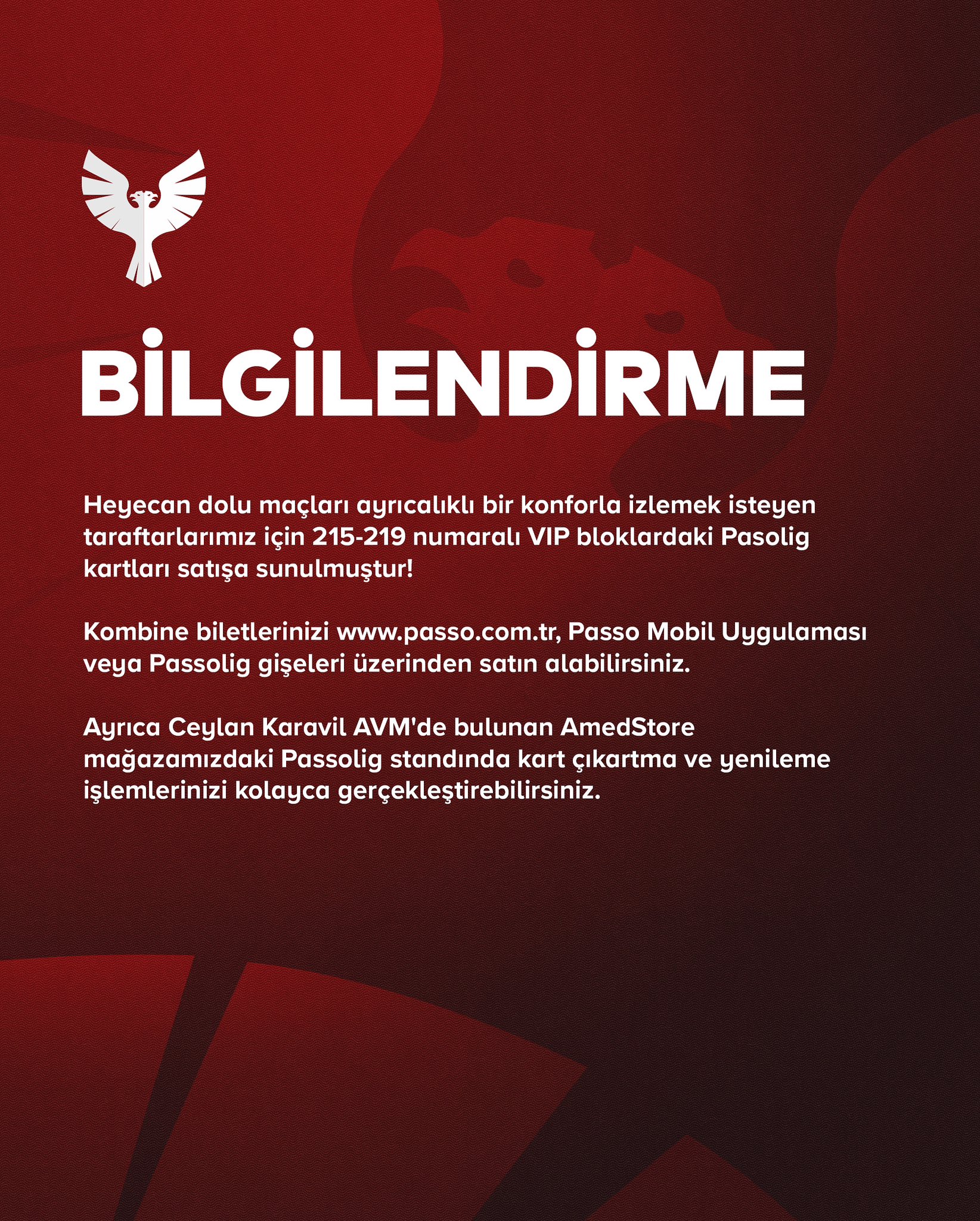 Kulüpten yapılan duyuruya göre, 215-219 numaralı VIP bloklardaki kombine biletler Passolig kartlarına yüklenebilir hale getirildi. Taraftarlar, bu biletleri passo.com.tr web sitesi, Passo Mobil Uygulaması veya Passolig gişeleri üzerinden satın alabilir.