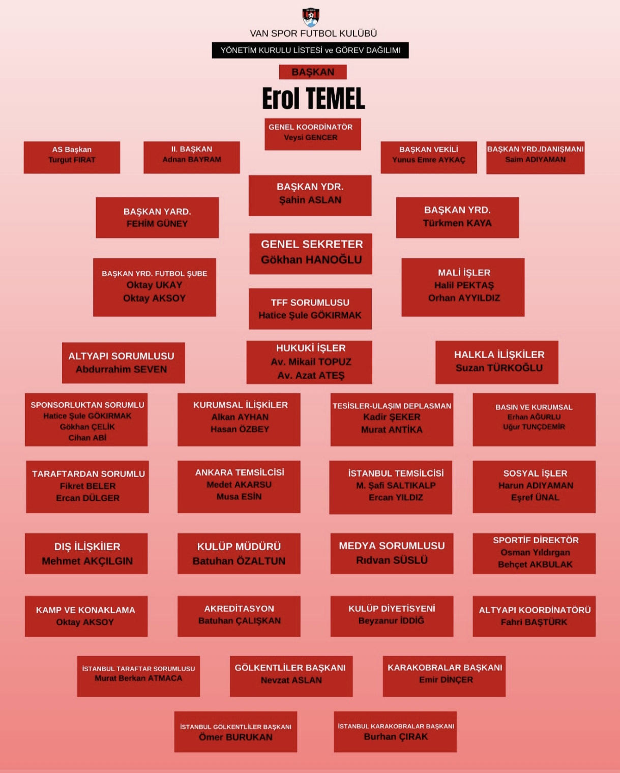 Yeni dönemde Vanspor’un yönetim kadrosu şu isimlerden oluştu: